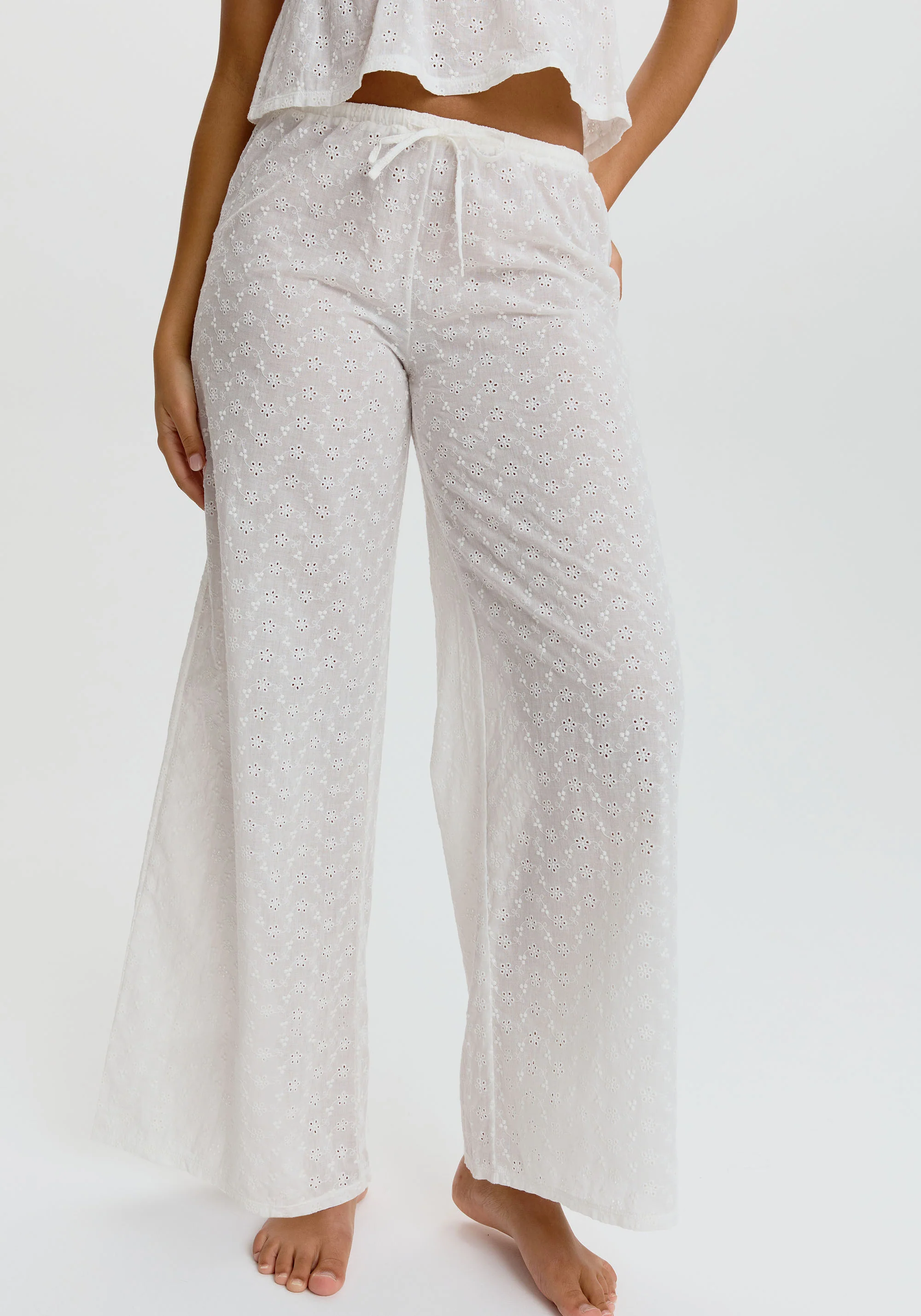 these 'wander' cotton embroidered eyelet pants are the vibe you’ve been waiting for—cool, comfy, and totally trendy. perfect for lounging or rocking that sun-kissed look.